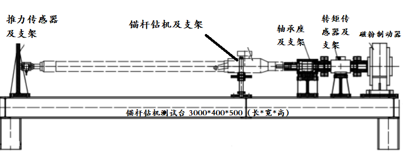 機械部分由被測錨桿鉆機、(應變片式或相位差)轉矩轉速傳感器、磁粉制動器、機械支架、聯軸器等連接件組成。